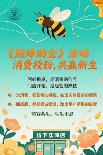 《熊蜂助企》—— 消费授粉,共赢新生熊蜂振翅,是消费的信号;门店开花,是经营的热忱。每一次消费,都是精准授粉,结出实体经济的硕果;每一回惠顾,都是真诚回馈,酿出用户消费的甜蜜。商客共生,生生不息。